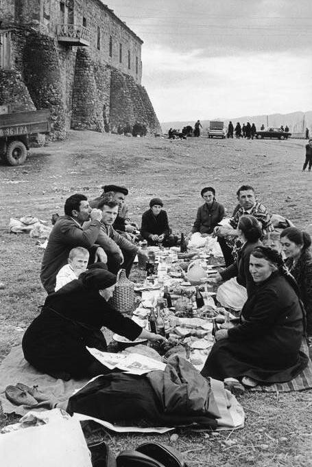 📸 Два редких кадра Анри Картье-Брессона, снятые у стен монастыря Алаверди в 1972 году, передают атмосферу той самой Кахети, которую невозможно спутать ни с чем: большие семейные пикники прямо на земле, домашнее вино, хачапури, свежий хлеб, смех детей и неспешные беседы взрослых.